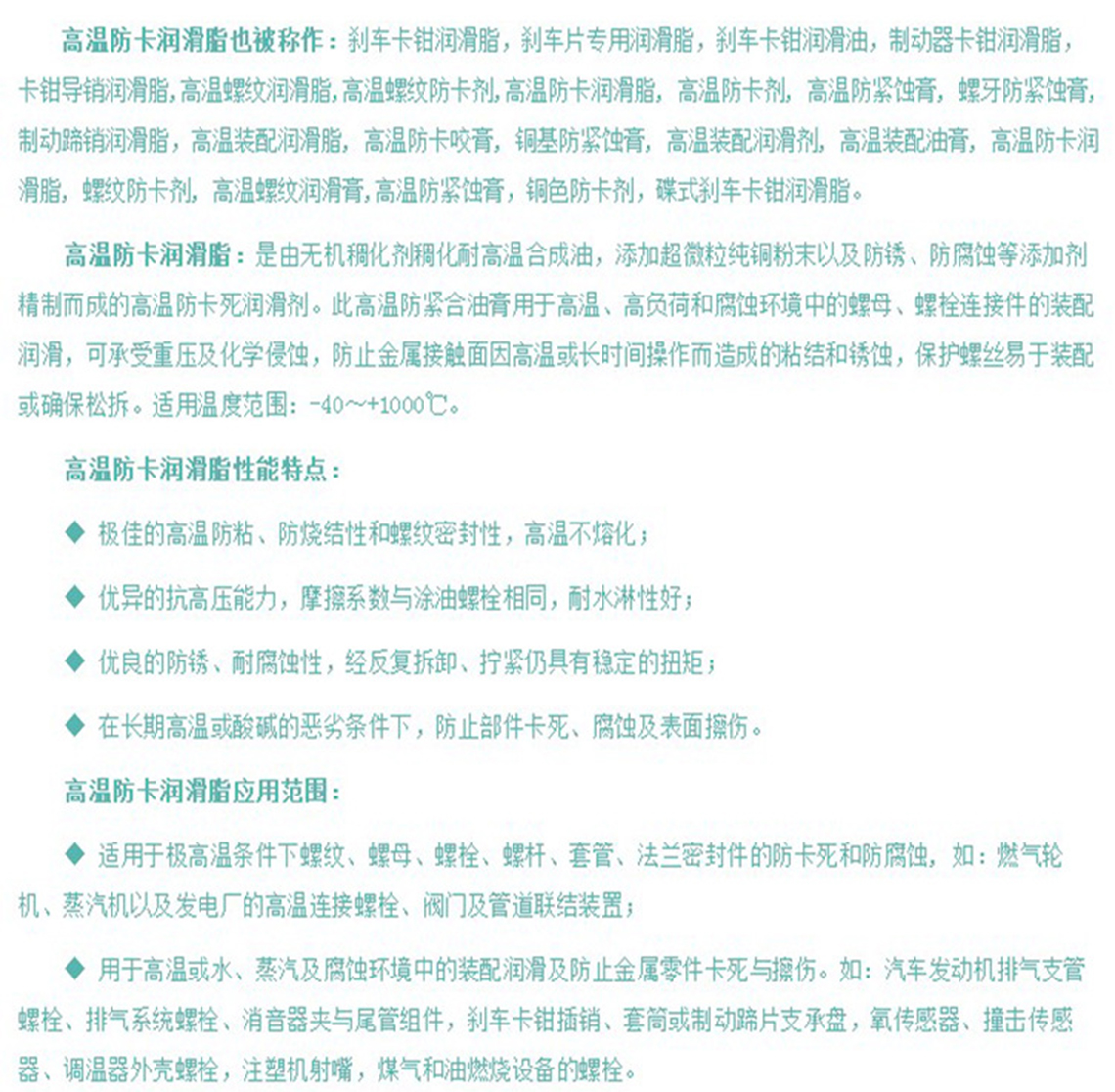 稠化劑類型 無機稠化 應用領域 汽車工業(yè)用脂